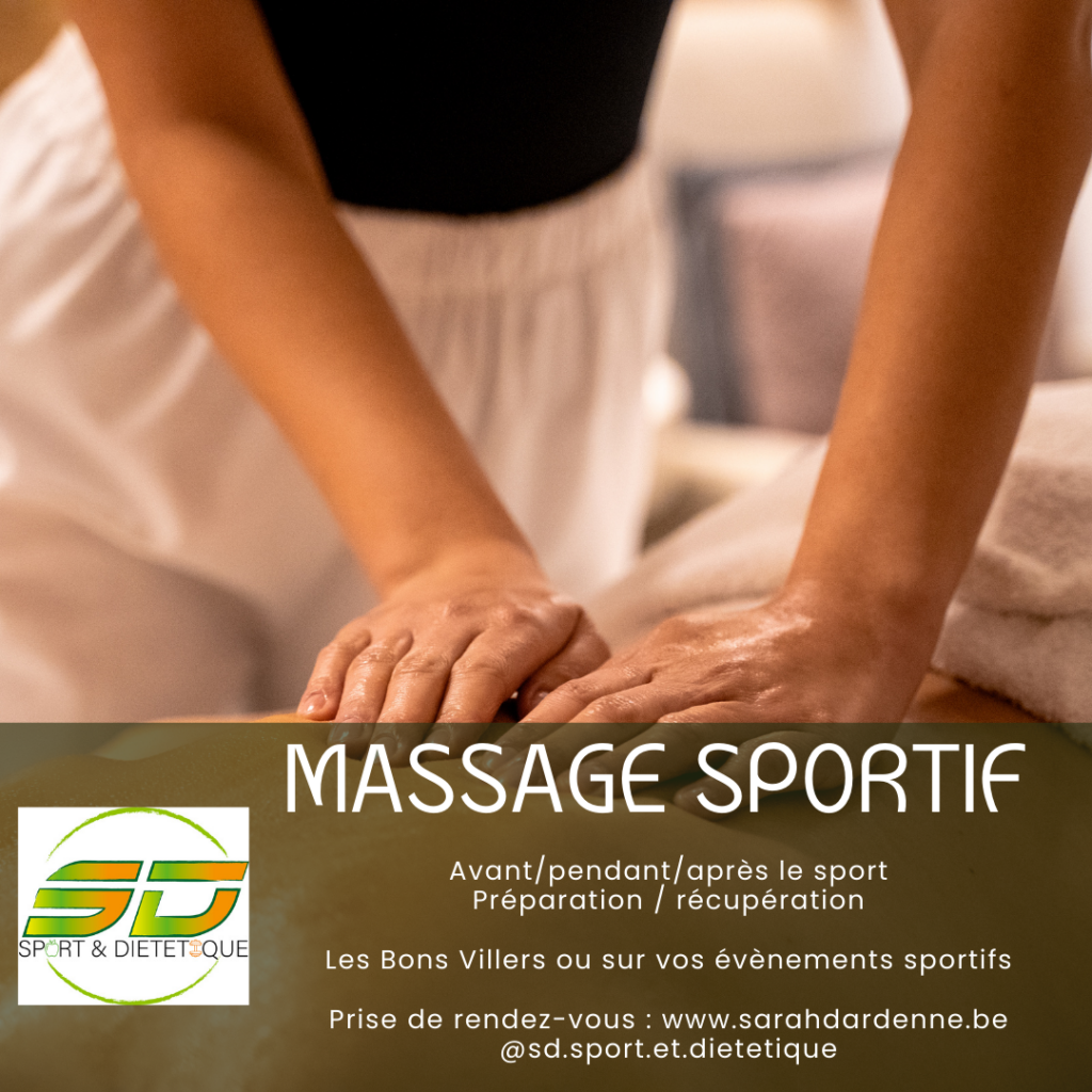 À l’occasion du jogging, profitez d’un massage sportif de récupération de 15 minutes avec Sarah Sarah Dardenne de SD-Sport&Diététique.